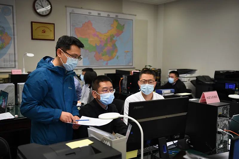 3月5日,国务院办公厅工作专班工作人员在认真工作。新华社记者 任鹏飞 摄