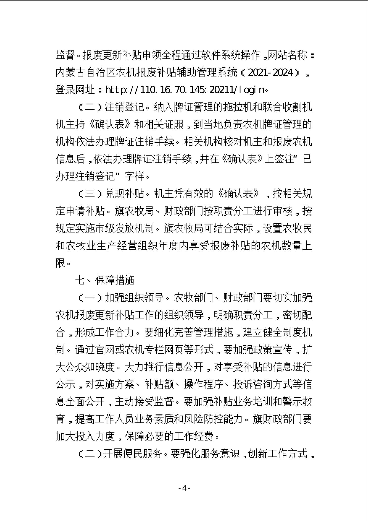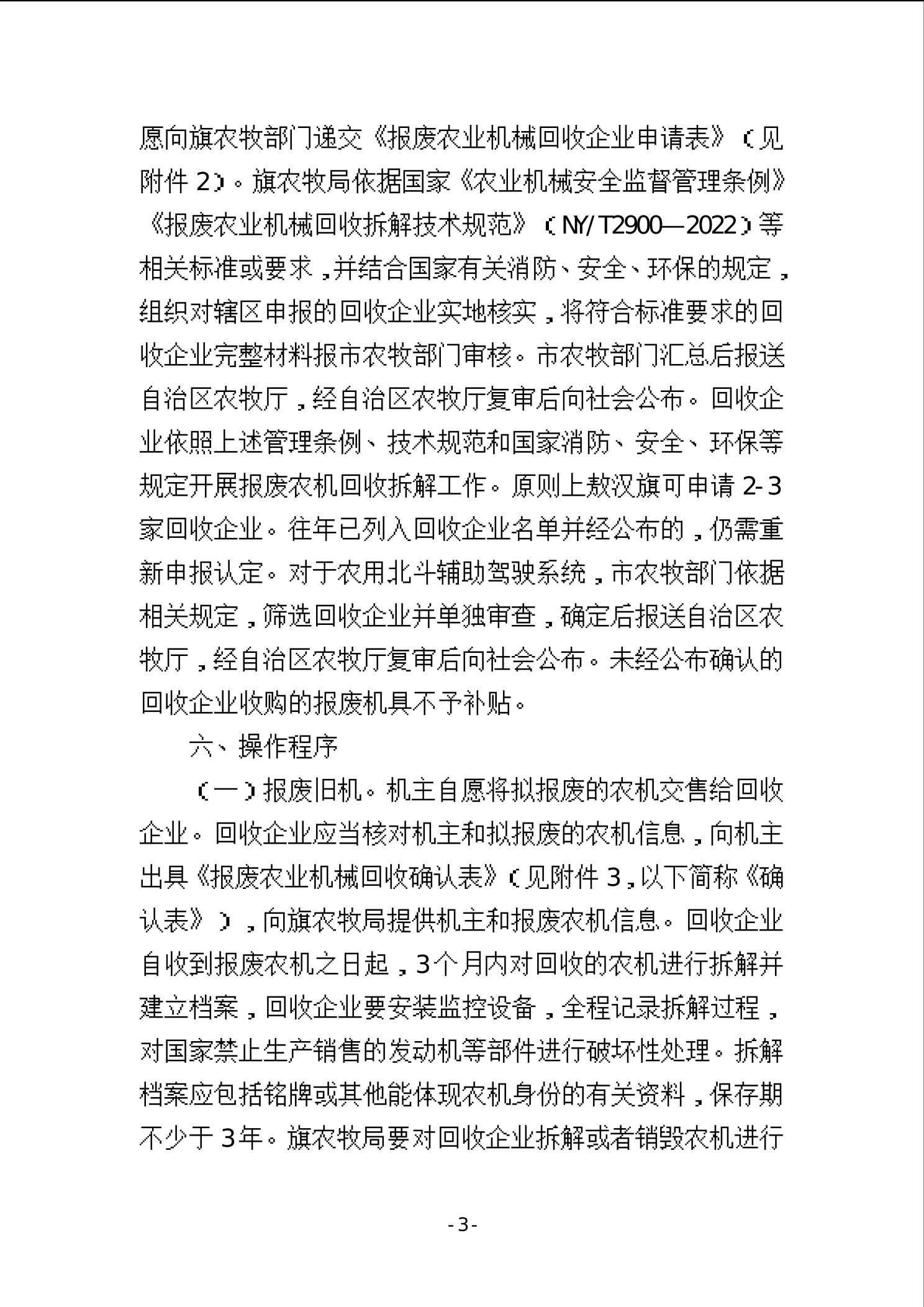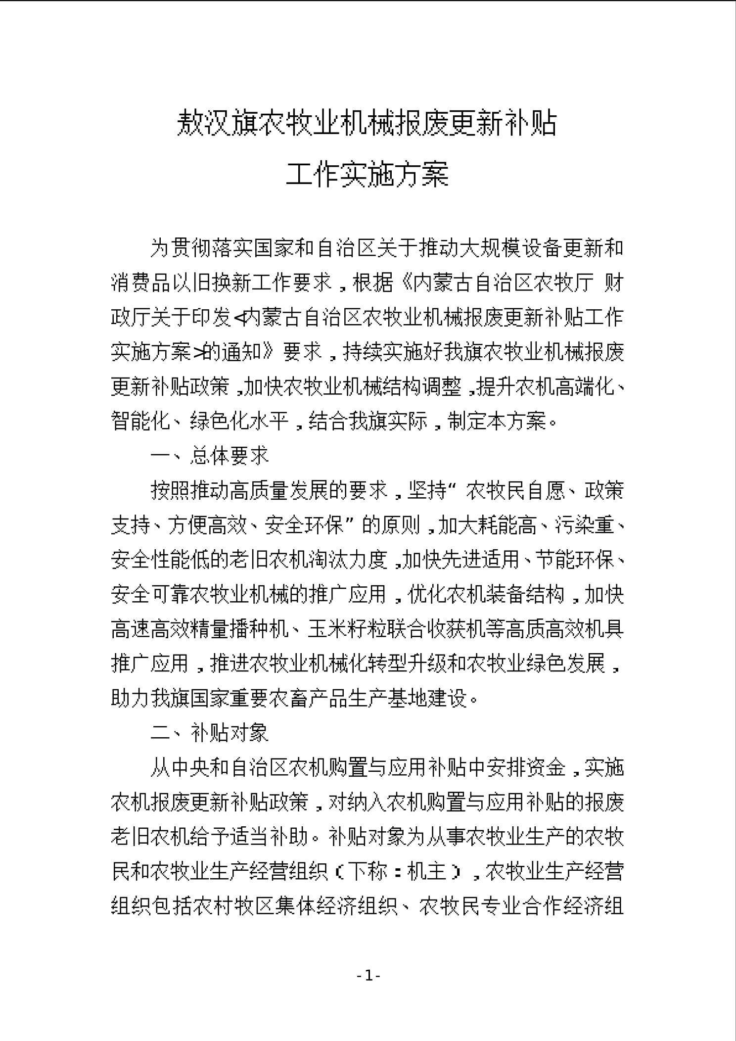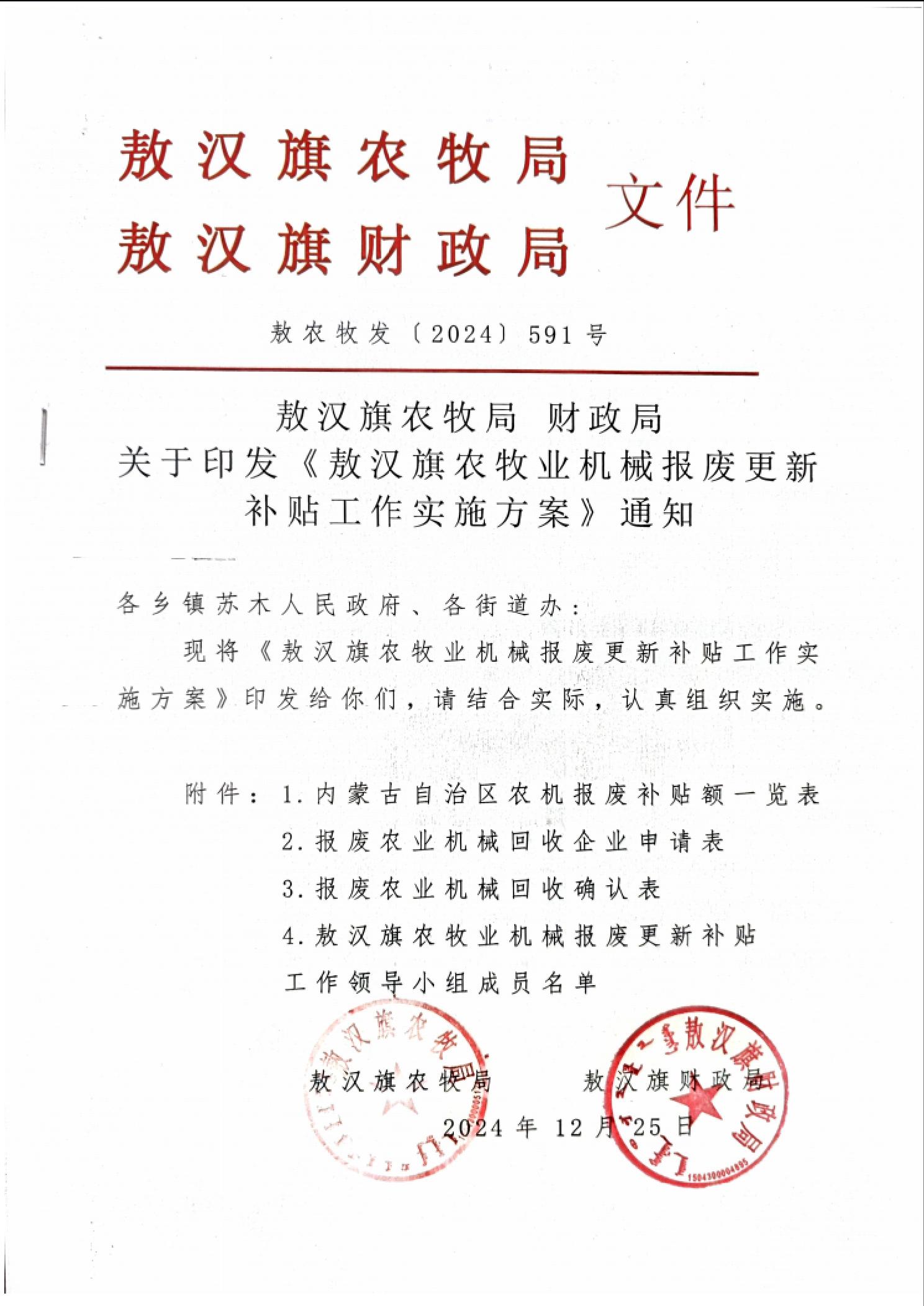 敖汉旗农牧局 财政局关于印发《敖汉旗农牧业机械报废更新补贴工作实施方案》通知