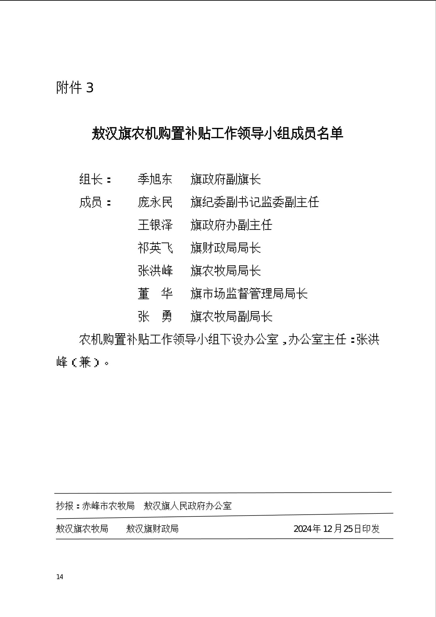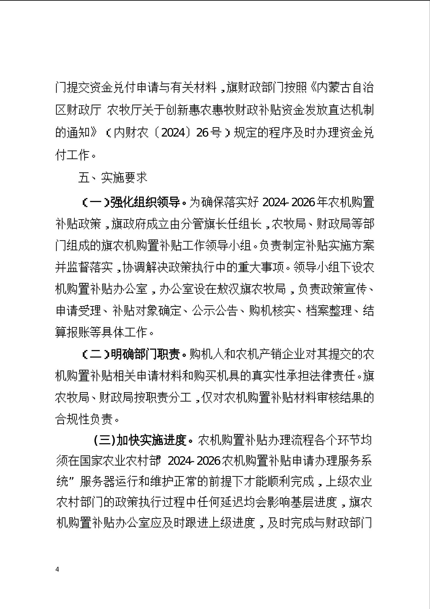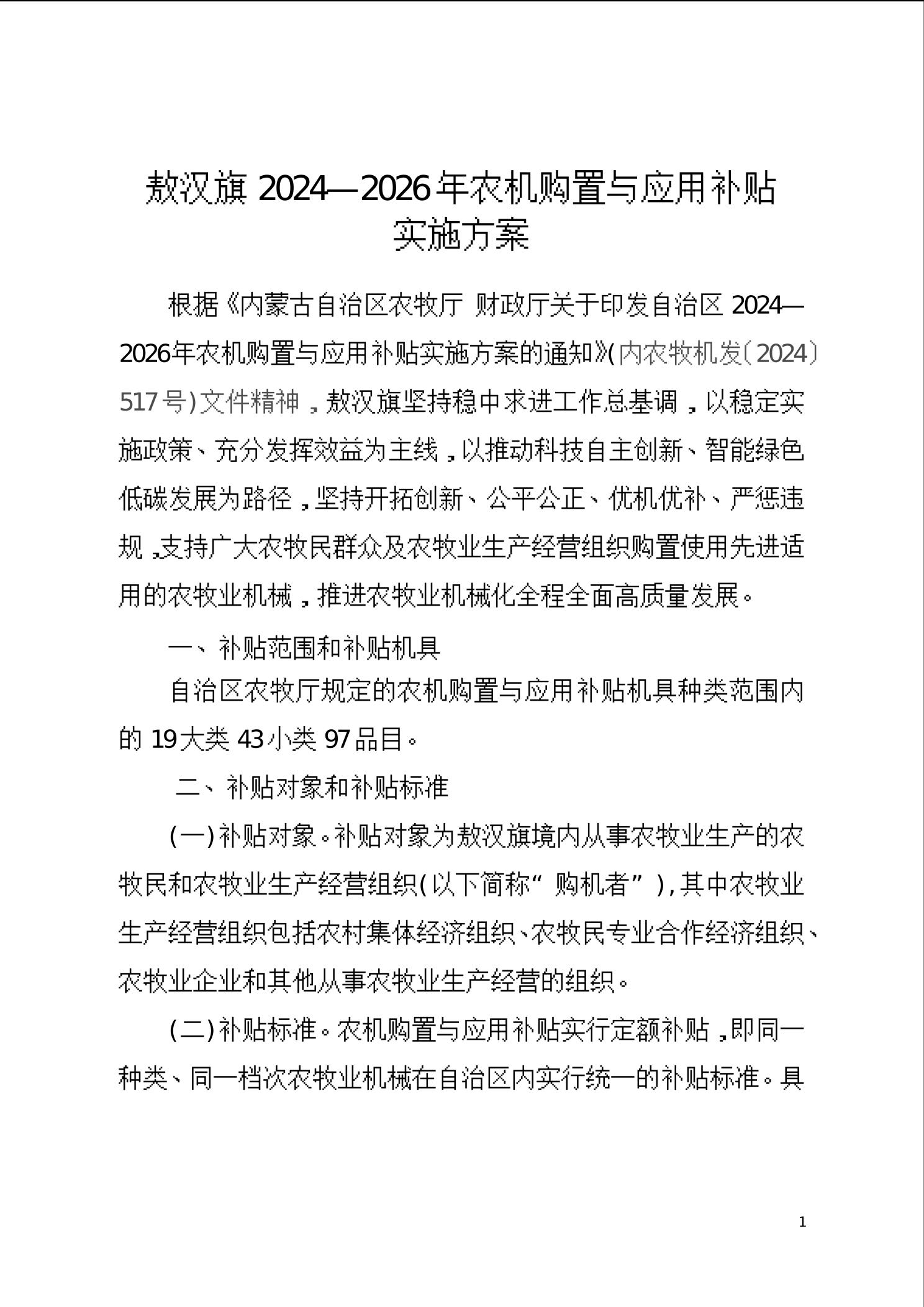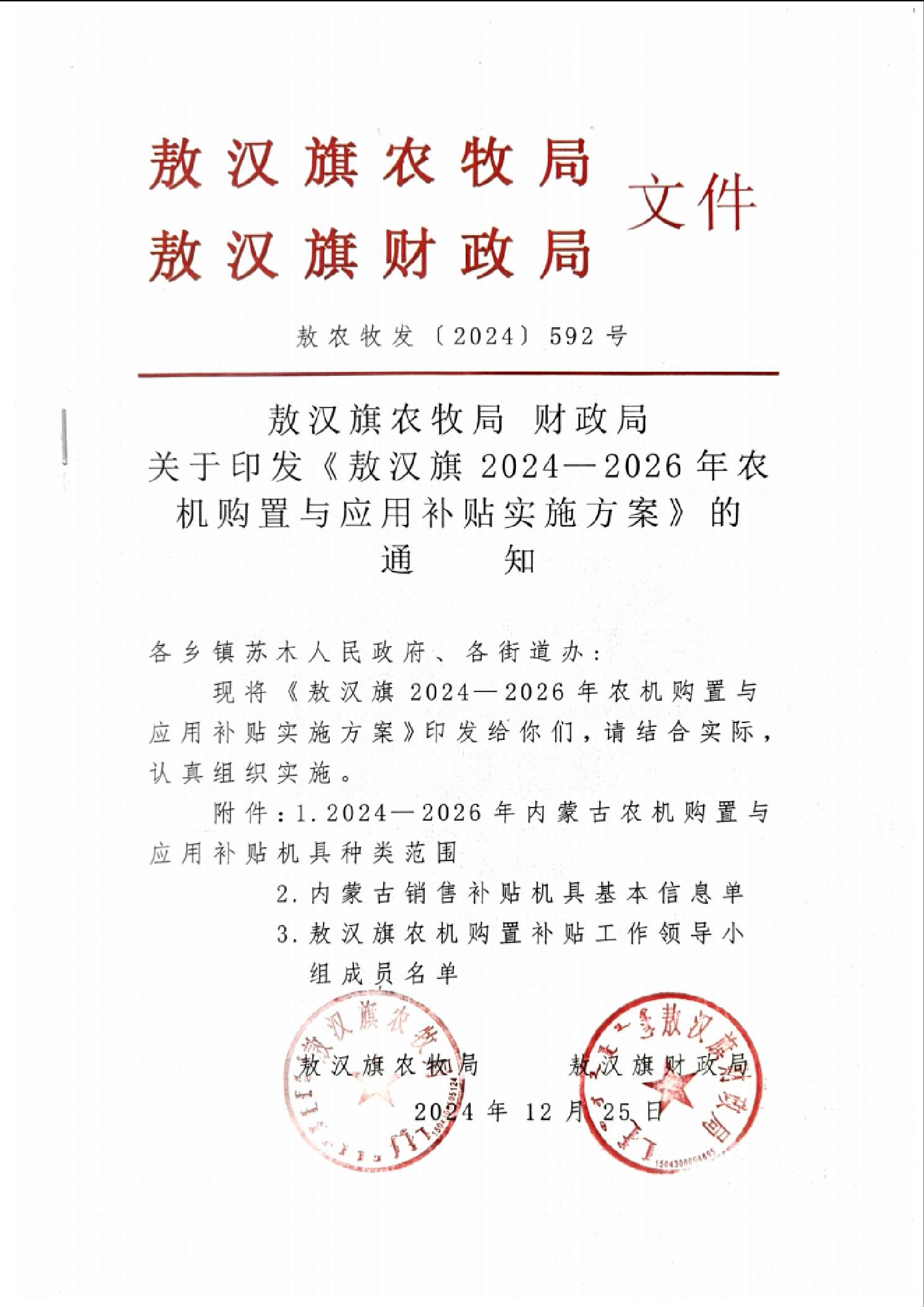 敖汉旗农牧局 财政局关于印发《敖汉旗2024-2026年农机购置与应用补贴实施方案》的通知