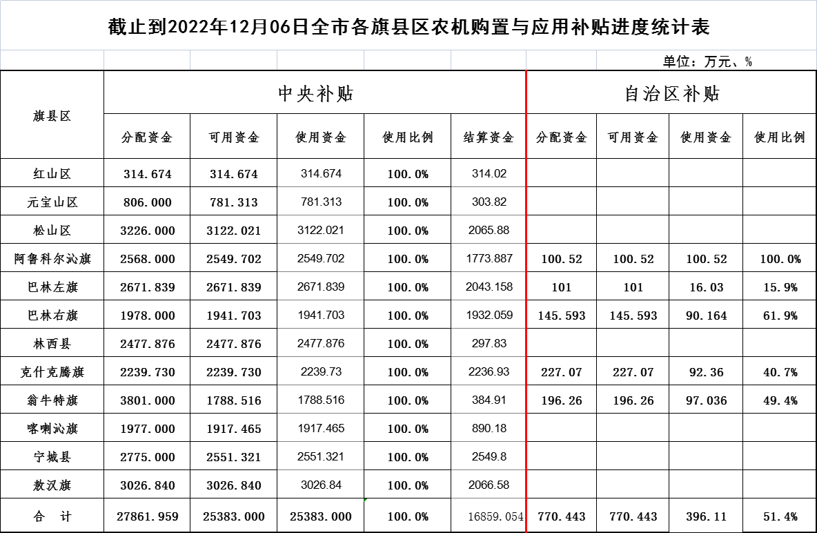截止到12月6日全市农机购置与应用补贴进度统计表