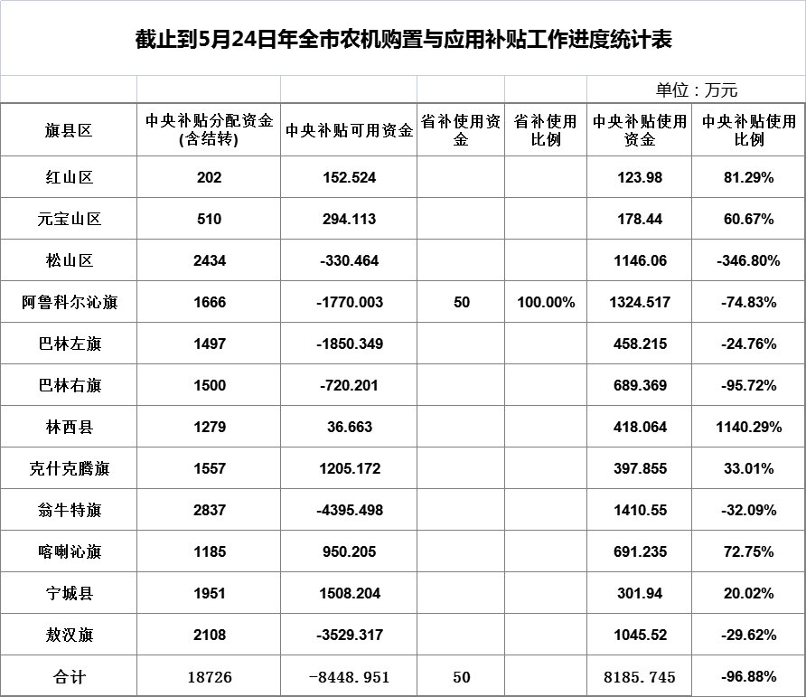 截止到5月24日全市农机购置与应用补贴进度统计表