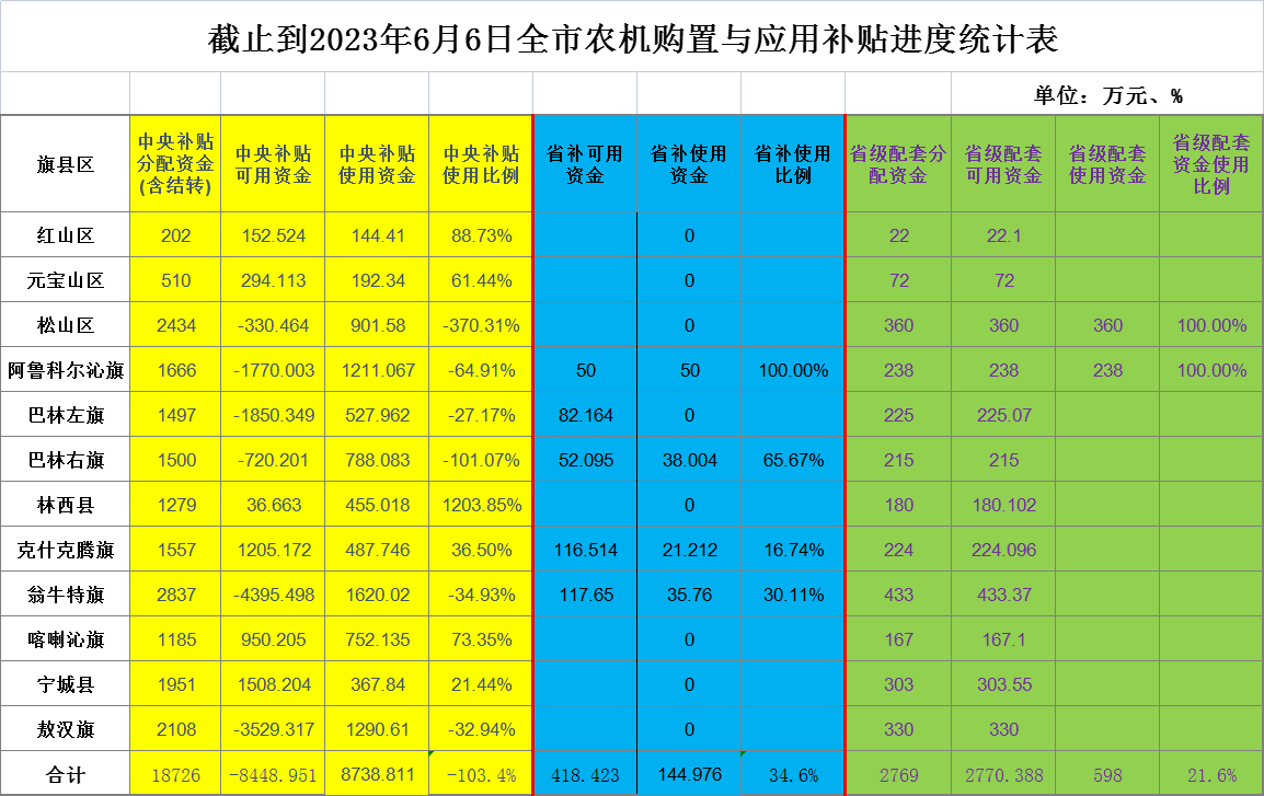 截止到6月6日全市农机购置与应用补贴进度统计表