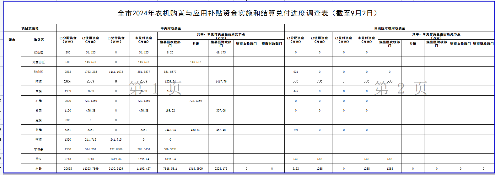 全市2024年农机购置与应用补贴资金实施和结算兑付进度调查表(截至9月2日)