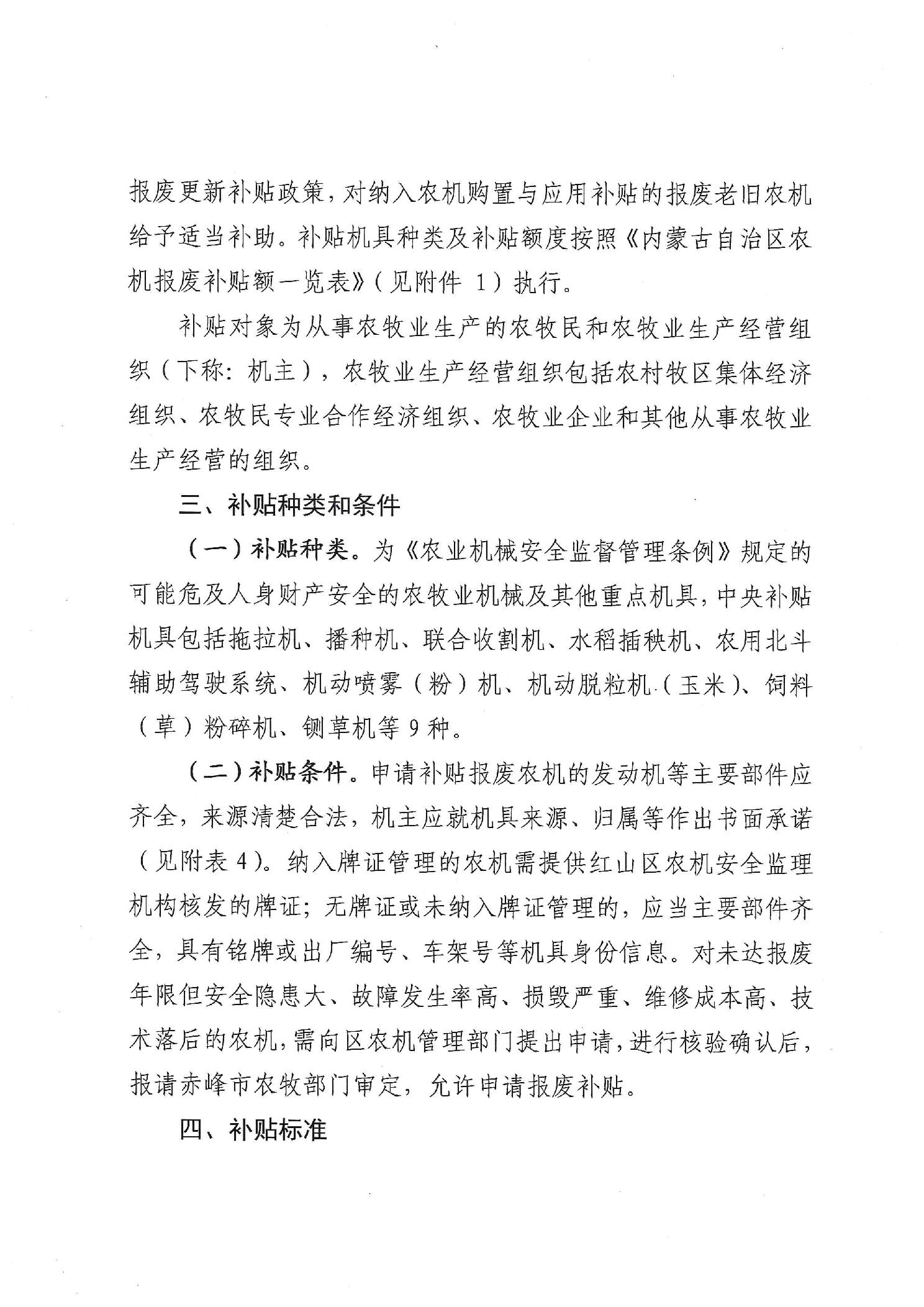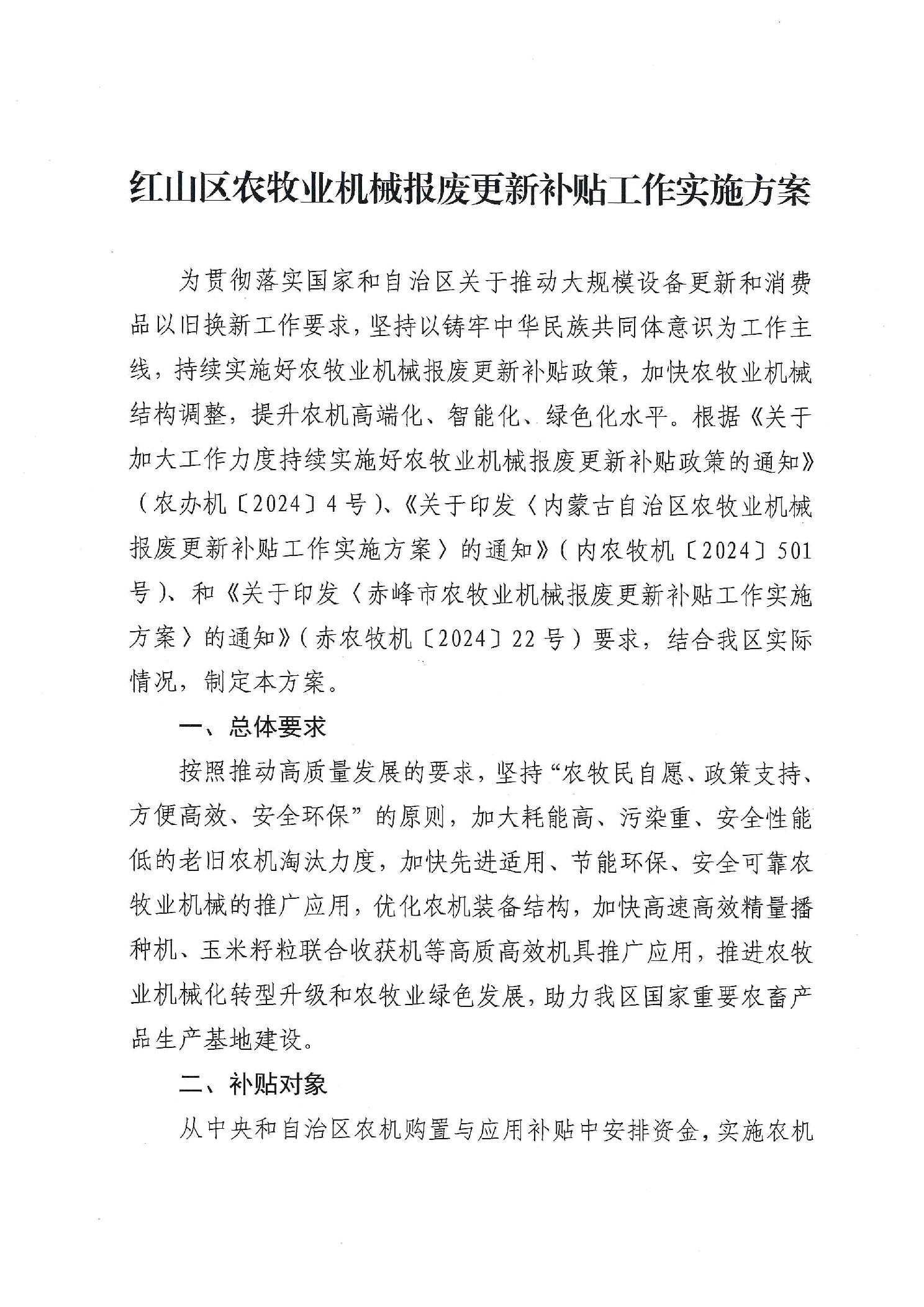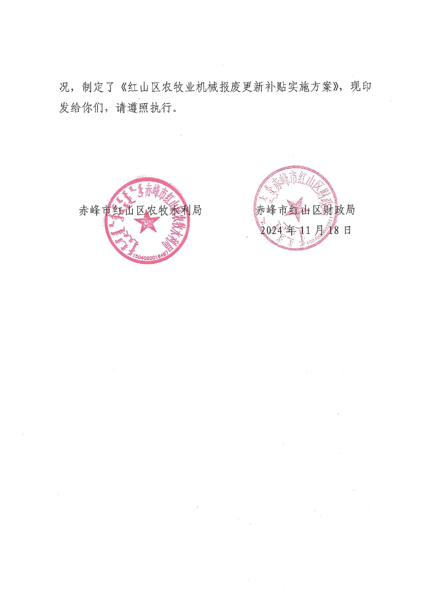 赤峰市红山区农牧水利局 财政局关于印发《红山区农牧业机械报废更新补贴工作实施方案》的通知