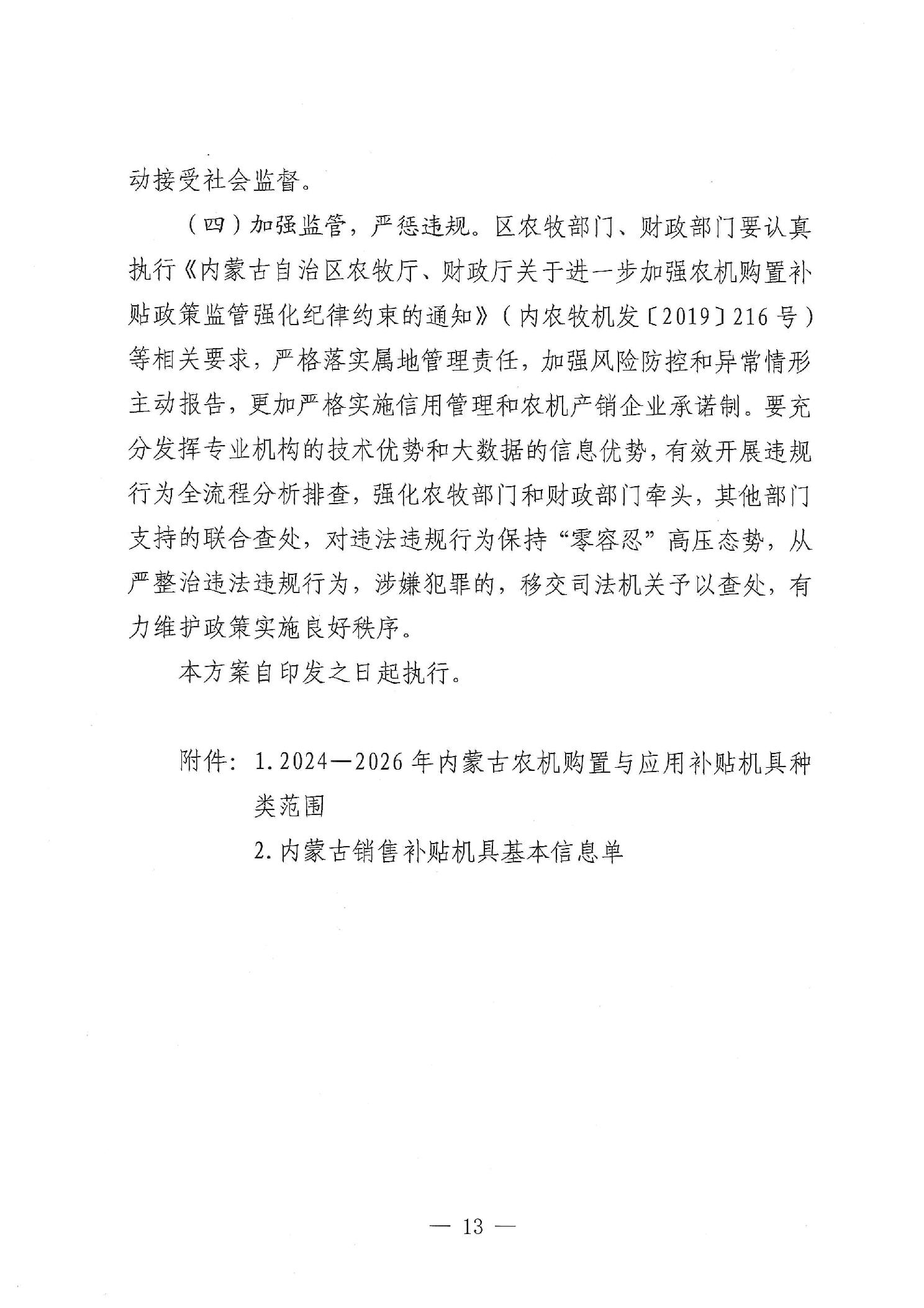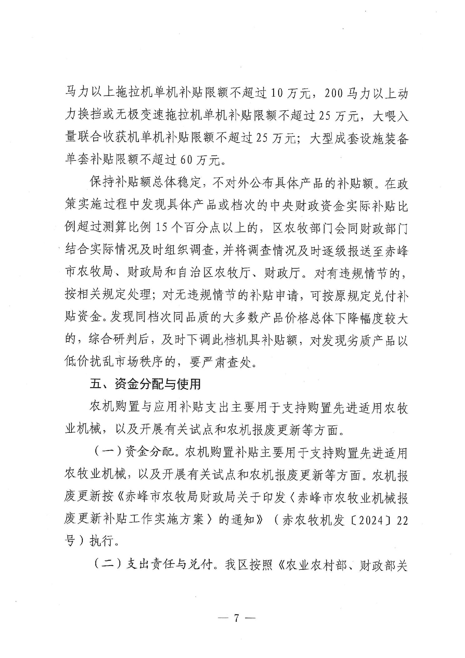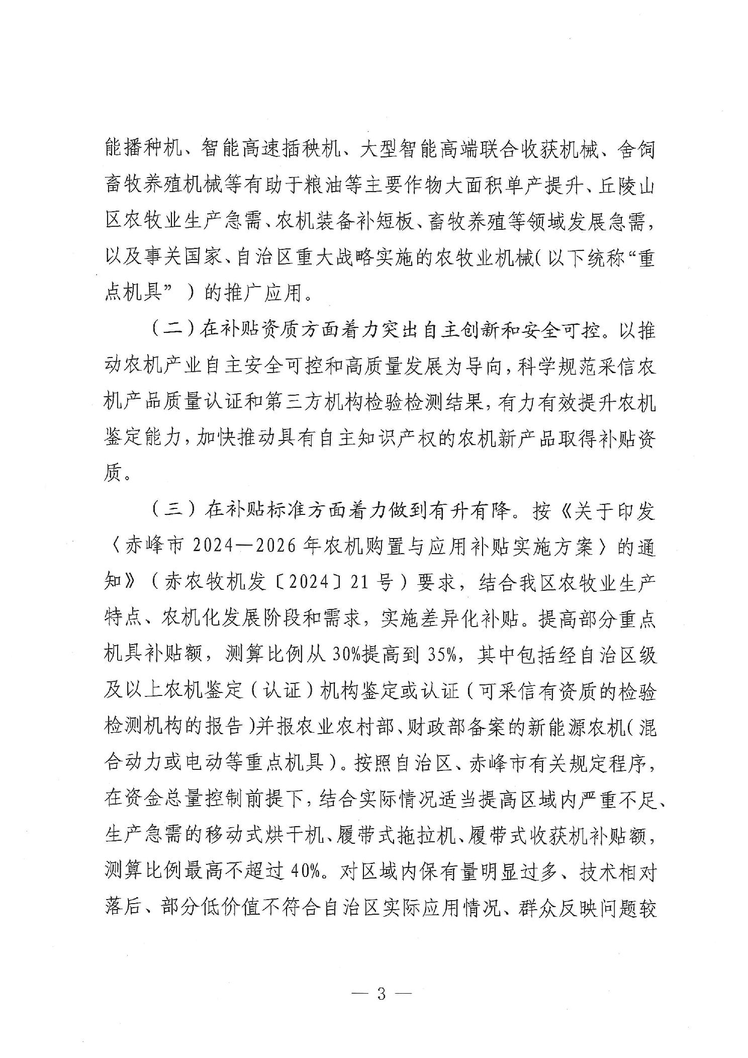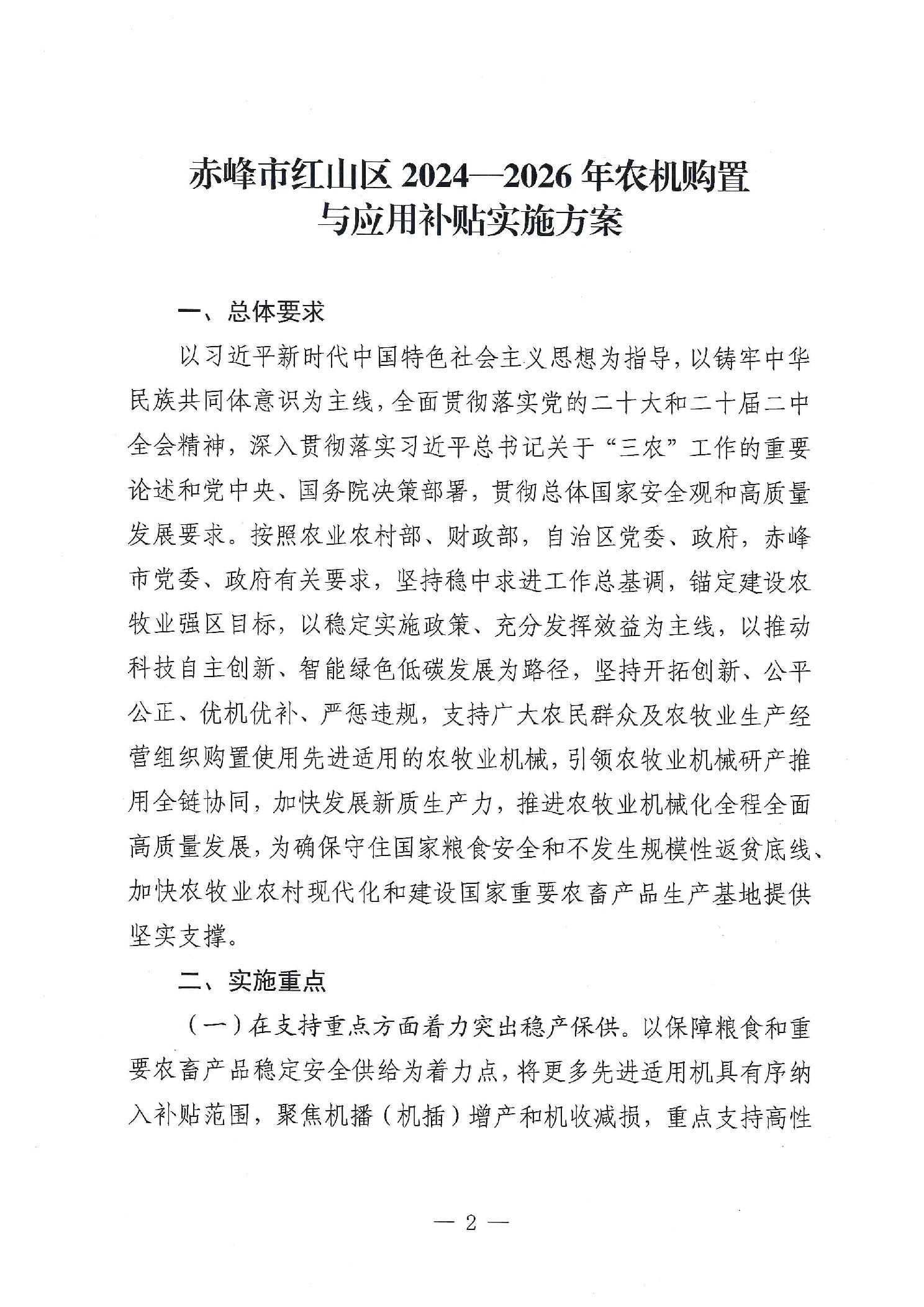 赤峰市红山区农牧水利局 财政局关于印发《赤峰市红山区2024-2026年农机购置与应用补贴实施方案》的通知