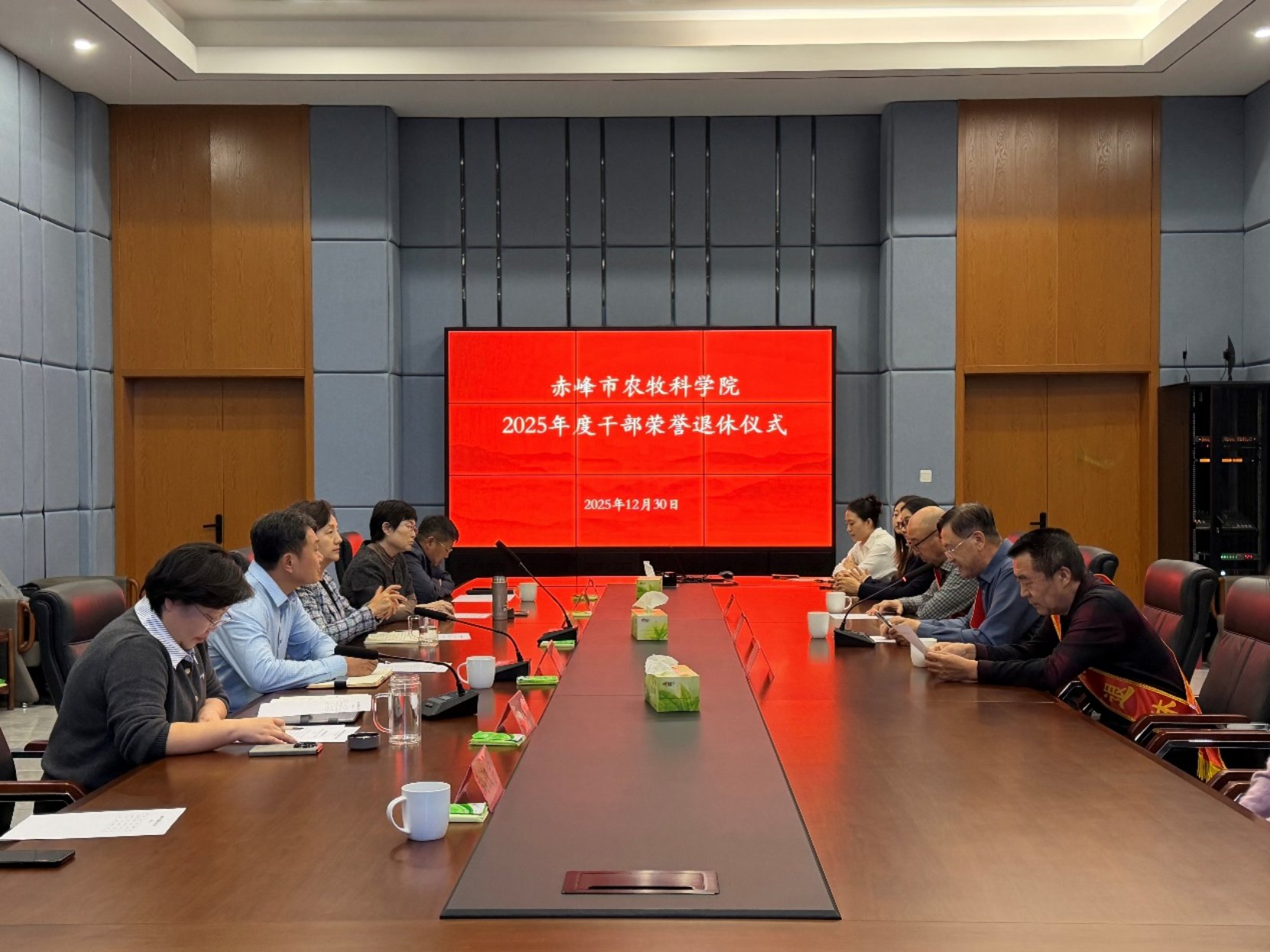 为深入贯彻落实习近平总书记关于老干部工作的重要指示精神,切实增强退休干部的政治荣誉感、组织归属感和退休仪式感,实现干部在岗与退休的平稳衔接与温暖过度,12月30日,市农牧科学院为2025年度退休职工举办了一场庄重而温馨的荣誉退休仪式。院领导班子成员、本年度退休职工、新入职年轻干部代表齐聚一堂,共同见证这一重要时刻。