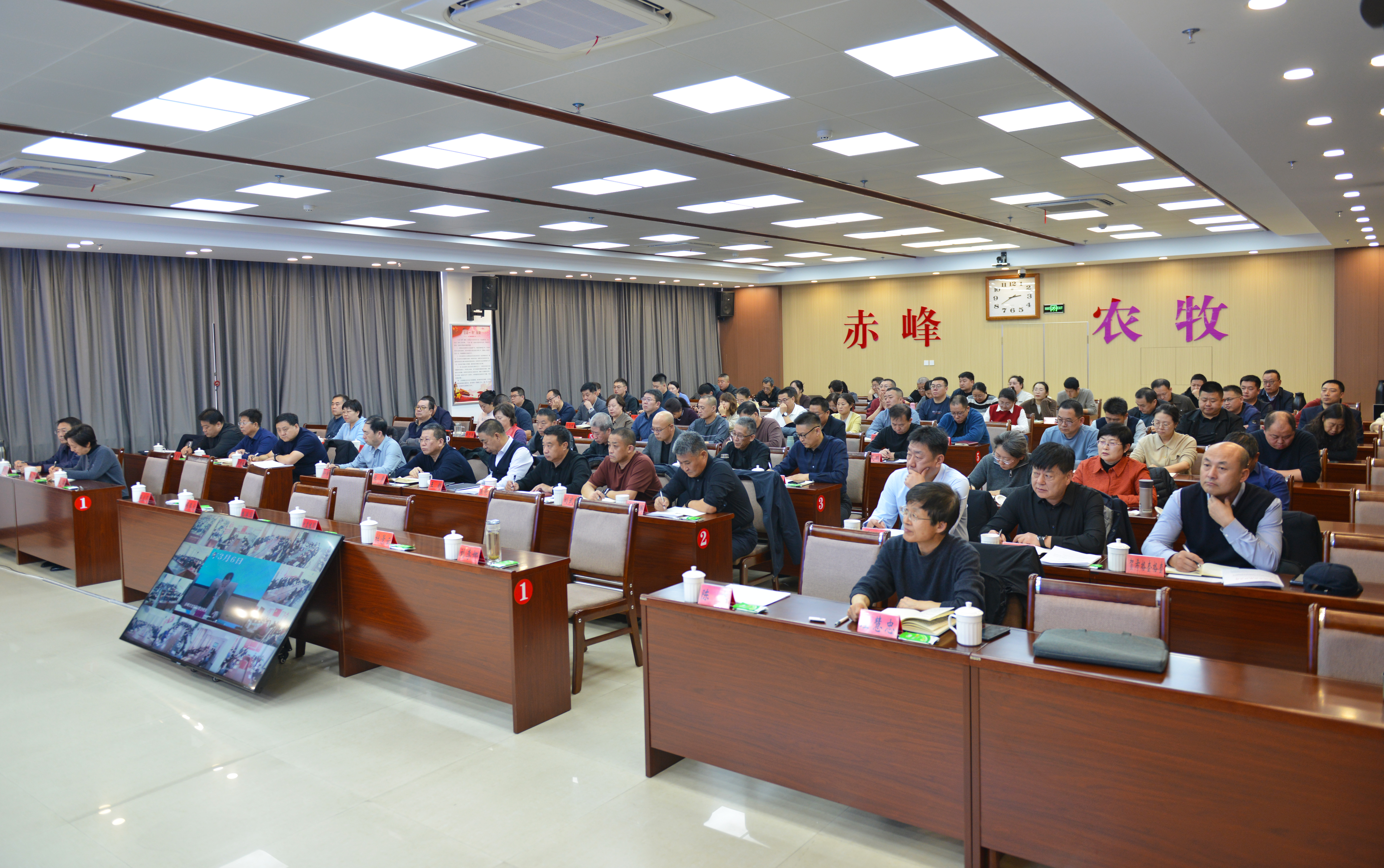 市农牧局党组成员、班子成员、调研员,局机关科室副科级以上干部,局属单位班子成员,各旗县区农牧局主要负责同志参加会议。会议以视频形式召开,各旗县区农牧局设分会场。