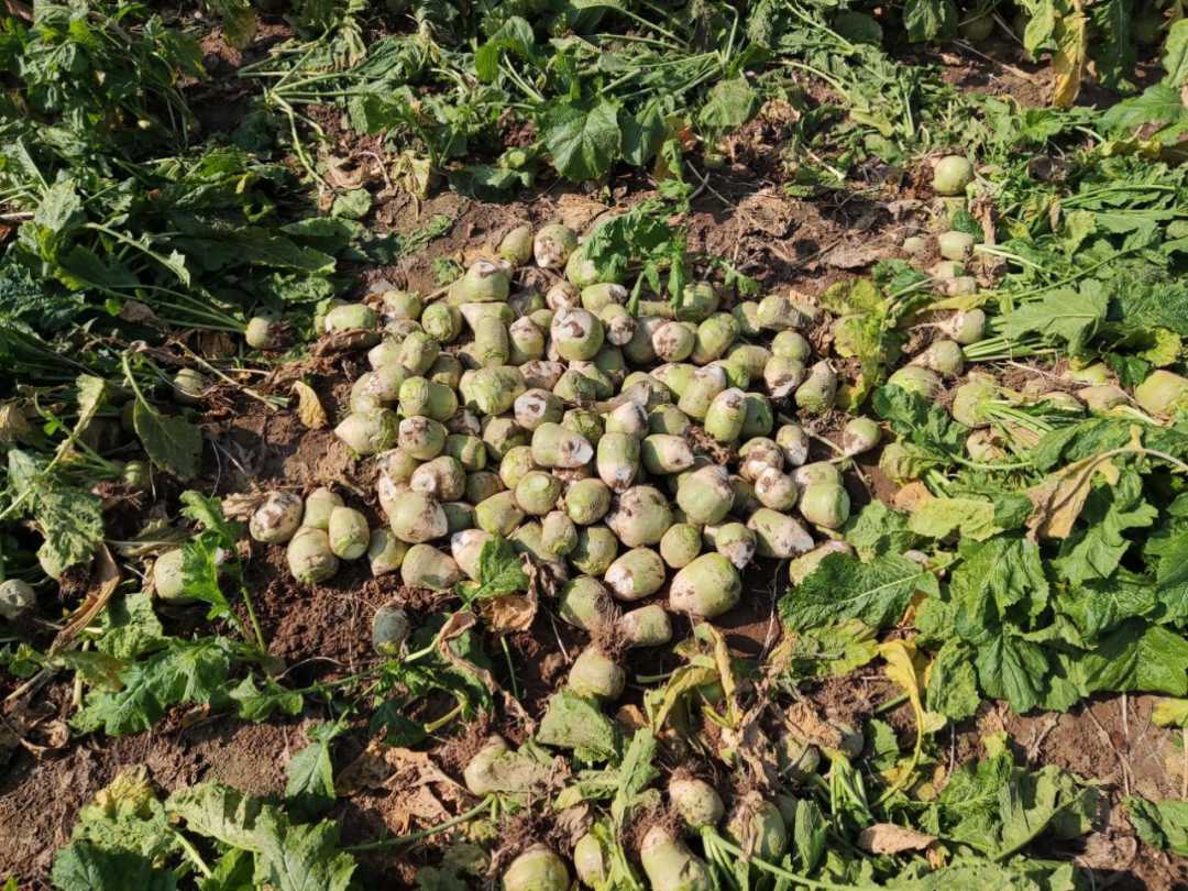芥菜,也叫辣菜疙瘩,形状似萝卜,但是入口是一股辣味,没有萝卜的清香。在菜农地里,芥菜一般和白菜为邻,几块白菜地里就会夹着一块芥菜地,两种菜秉性相同,往往一起播种,一起收获。白菜被腌成酸菜,芥菜则被腌成“咸菜疙瘩”。