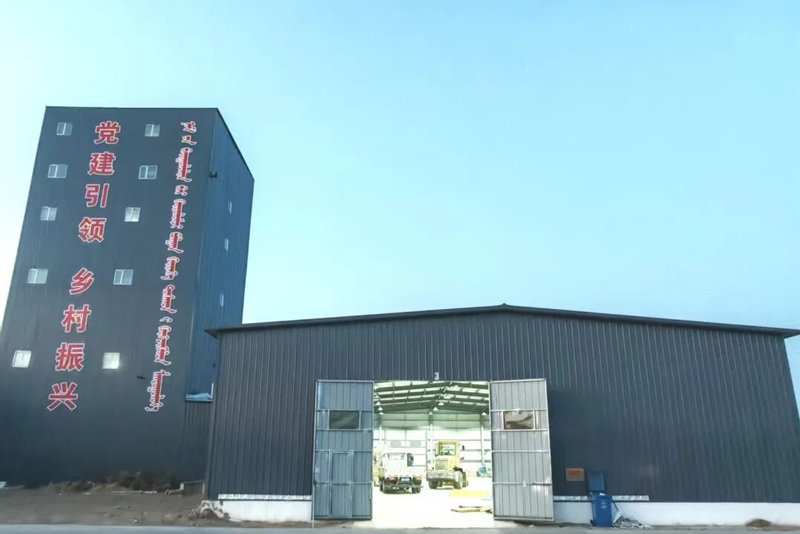 设施保障+产业链条强化绿色发展支撑锚定党支部“领头雁”作用,阿民温都尔嘎查依托各类资金投入完善设施建设、延伸产业链条,为绿色发展筑牢坚实支撑。投入400万元建成饲草料加工厂,配套800平方米原料库及先进生产设备,可为牧民提供品种齐全、质优价廉的饲料,每吨价格较市场价降低数百元,既为养殖户节省生产成本,每年还能为集体创收18万元;投入430万元建设玉米存储烘干厂,通过“嘎查+公司+农户”模式保障粮食稳定销路,其年烘干能力达3万吨,让集体年增收20万元的同时,每斤玉米还能为农牧民多增收0.1元;此外,依托农牧局产业园区专项资金,正推进高标准建设智慧化犊牛托养场,配备T字形养殖棚、饲料加工车间及智慧饲喂系统,建成后将有力推动畜牧业向数字化、智慧化升级。