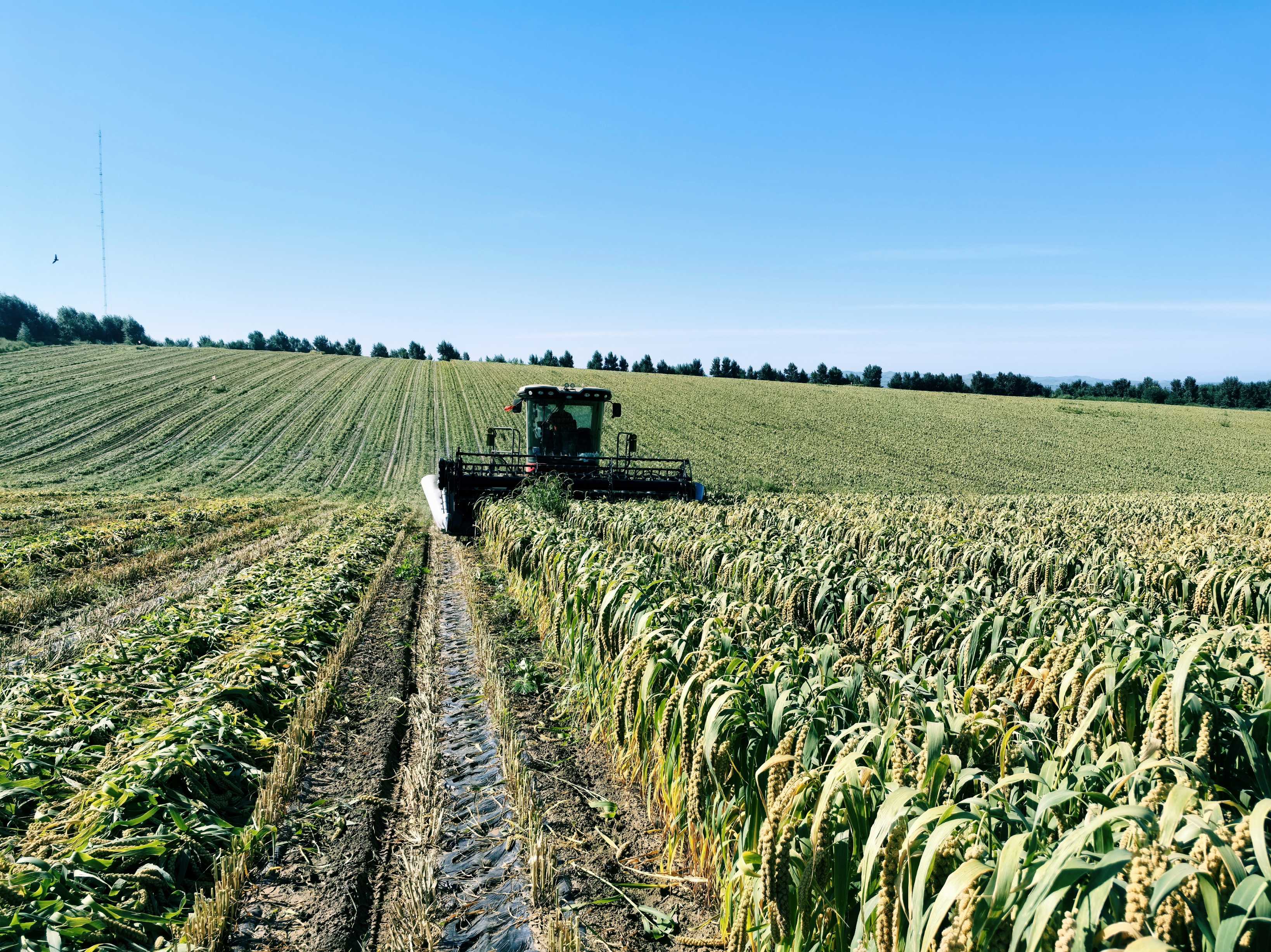 金色粮谷打底,把稳丰收“核心盘”。以金色谷子、玉米为基底,守牢粮食安全底线,让沃野良田结出丰收硕果。全镇稳步推进10万亩谷子、5万亩玉米密植种植,建成全国谷子新品种科研展示基地,集中培育87个优质谷子品种,让“种子芯片”赋能产业提质;推广玉米密植精准调控技术,搭配膜侧种植模式实现亩保苗率超6100株,亩均增产200—300斤,5万亩密植玉米田金秋时节满目金黄,成为粮食增产、群众增收的“压舱石”。同步发展1.1万亩玉米及高粱制种产业,以“公司+基地+农户”模式实现标准化、机械化管理,优质种子销往周边多地,让金色粮谷既稳饭碗,又拓销路。