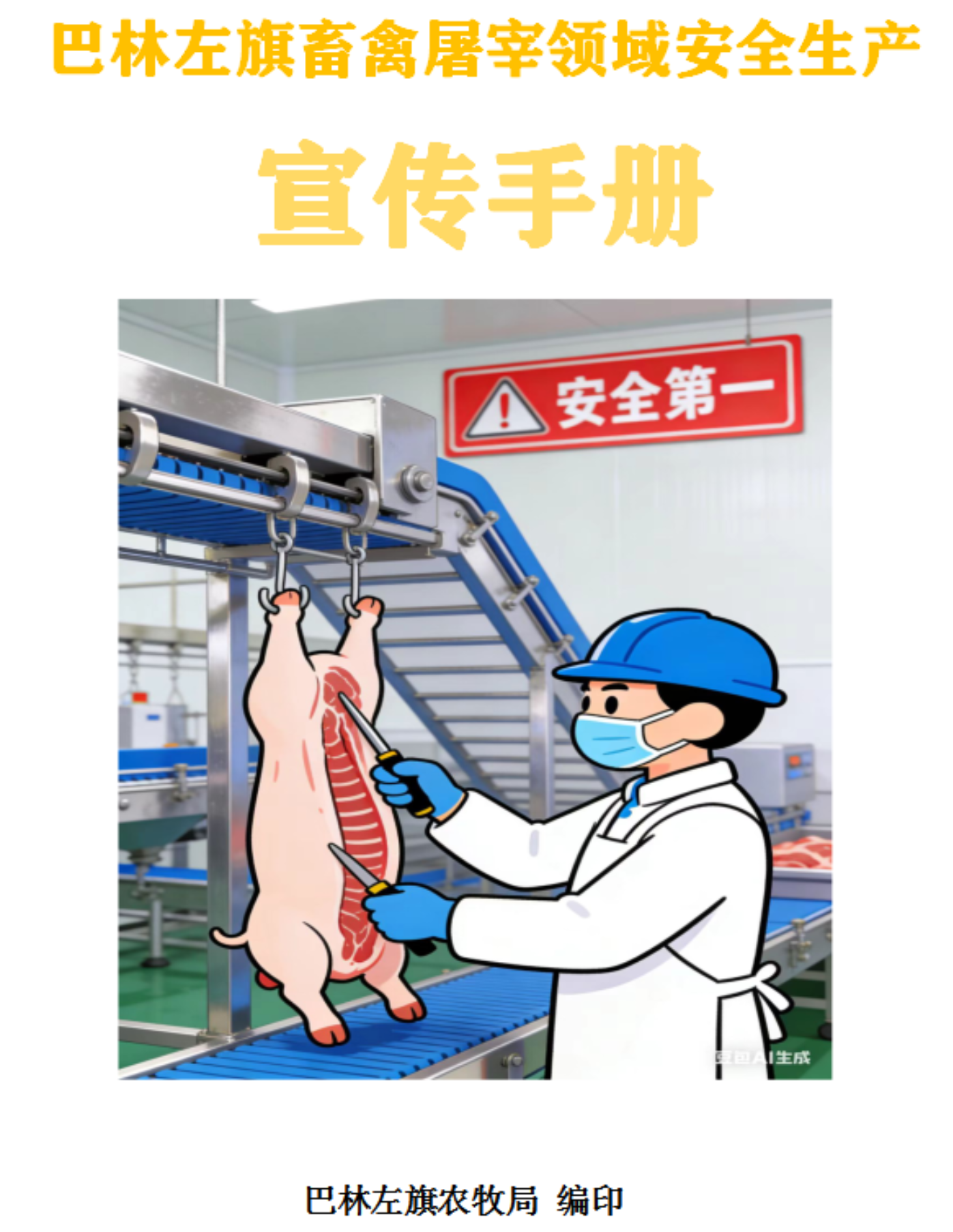 岁末年初,肉类消费进入旺季,屠宰行业迎来生产经营高峰期,同时冬季低温、风险隐患交织叠加,安全生产与产品质量安全保障任务艰巨。为切实有效防范化解重大安全风险,遏制各类安全生产事故的发生,请广大生产经营主体查收此份安全生产手册,加强安全防范措施,保护生命财产安全。