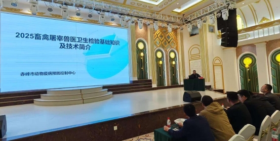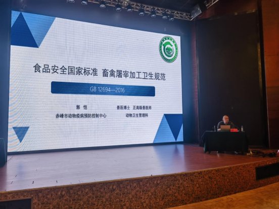 赤峰市动物疫病预防控制中心郭恺解读了《畜禽屠宰加工卫生规范》相关内容,强调了屠宰企业是肉品品质检验工作的主体责任,企业负责人是肉品品质的第一责任人。全市畜禽屠宰企业要严格按照畜禽屠宰加工卫生规范的要求开展屠宰行为,保障肉品品质安全。