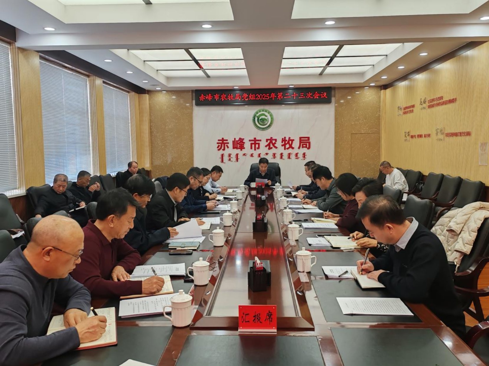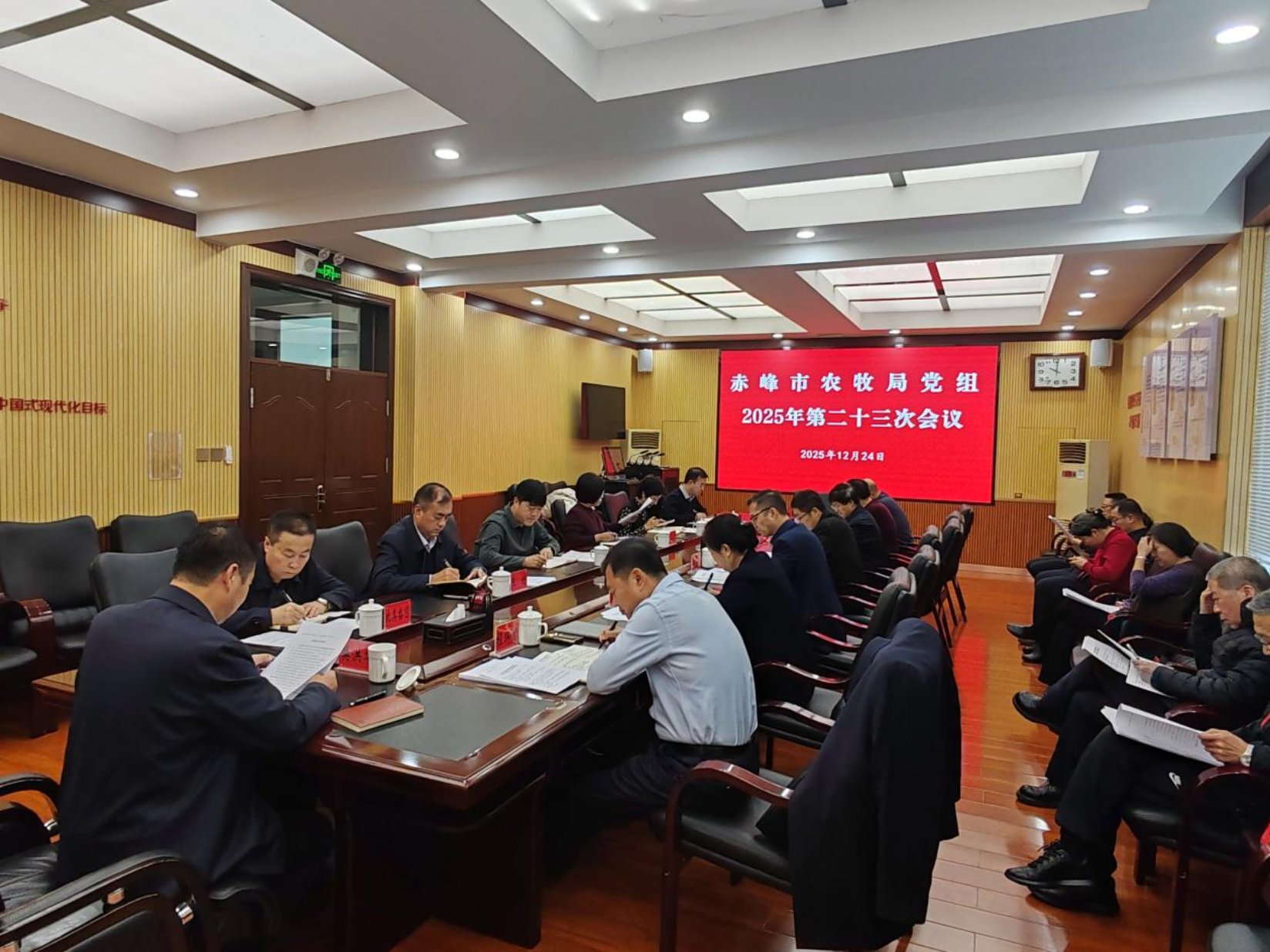12月24日,市农牧局党组书记樊洪华主持召开赤峰市农牧局2025年第23次党组会,传达学习习近平总书记重要讲话精神及文章精神,安排部署贯彻落实工作。