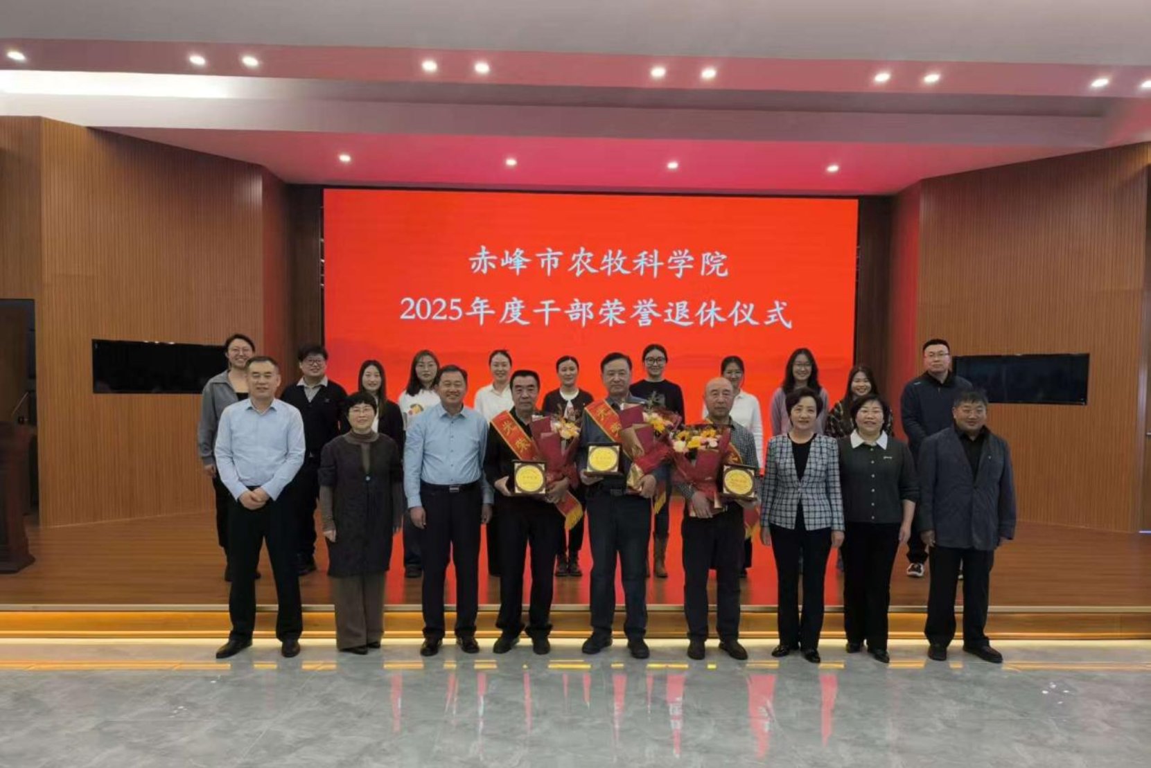 为深入贯彻落实习近平总书记关于老干部工作的重要指示精神,切实增强退休干部的政治荣誉感、组织归属感和退休仪式感,实现干部在岗与退休的平稳衔接与温暖过度,12月30日,市农牧科学院为2025年度退休职工举办了一场庄重而温馨的荣誉退休仪式。院领导班子成员、本年度退休职工、新入职年轻干部代表齐聚一堂,共同见证这一重要时刻。